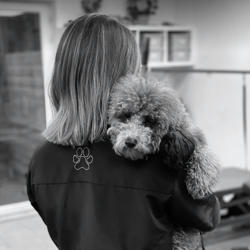 Langs de rechterzijde van het trimsalon is parking voorzien voor twee wagens.